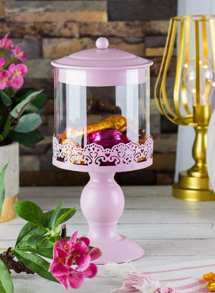 بونبونيرة زجاج مع قاعدة معدن لون وردي