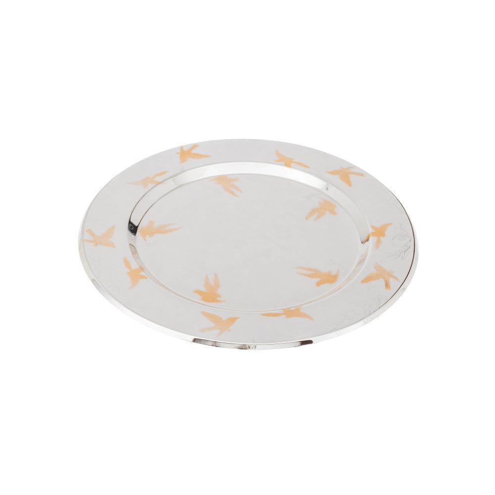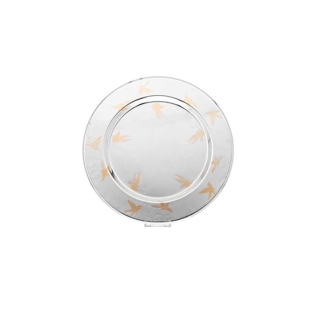 صحن تقديم ستيل دائري 35 سم لون فضي ذهبي