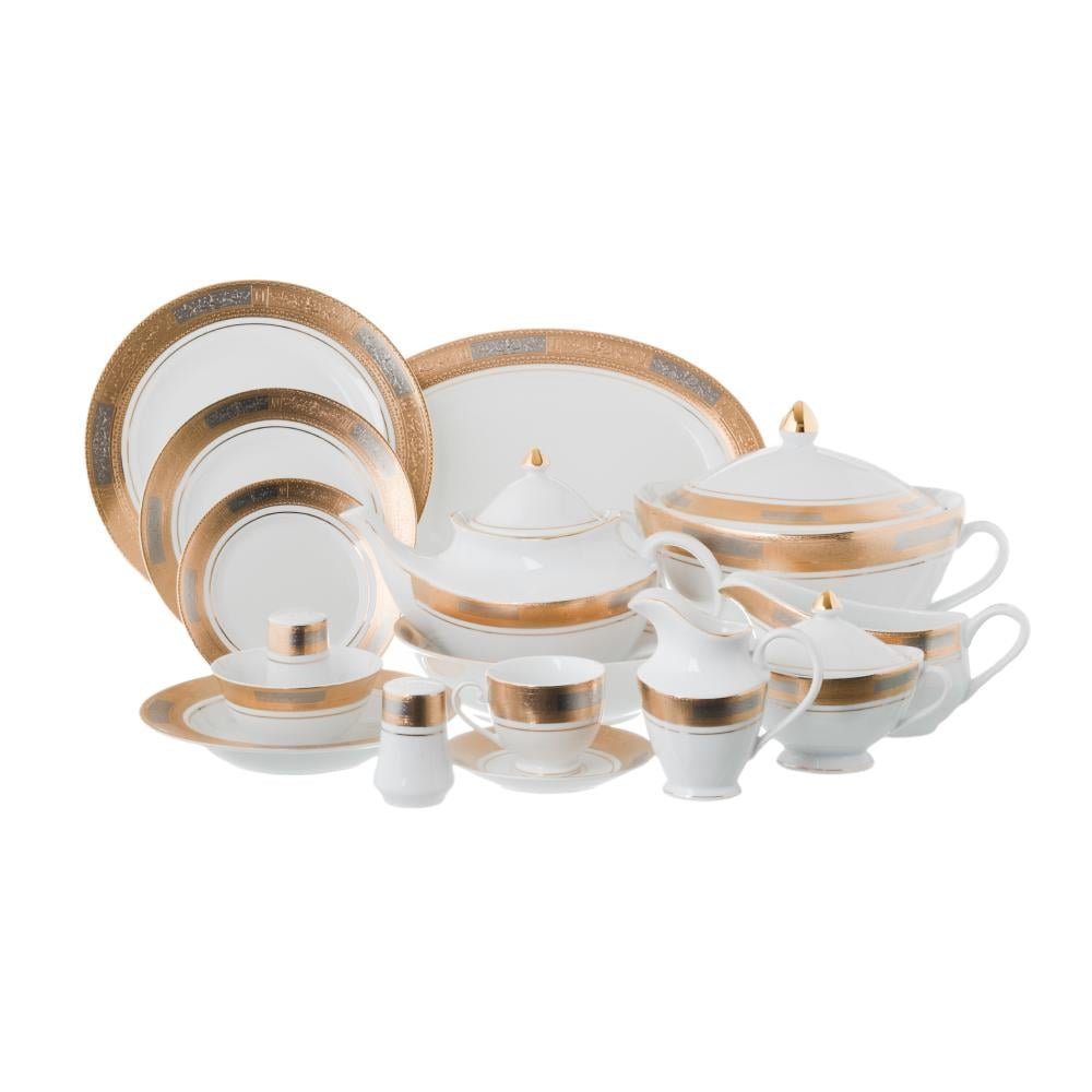 طقم سفرة بورسلين مطلي ذهبي 100 قطعة
