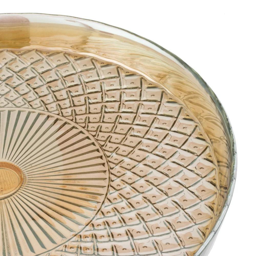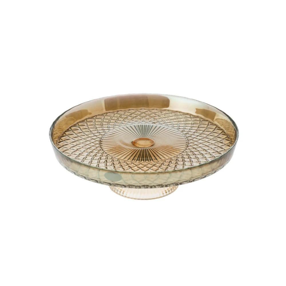صحن كيك زجاج تركي بقاعدة لون بيج