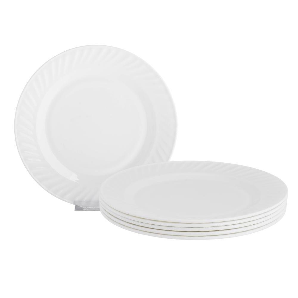 طقم صحون أكل زجاج أركوبال أبيض فاخر مكون من 6 قطع مقاس 25 سم