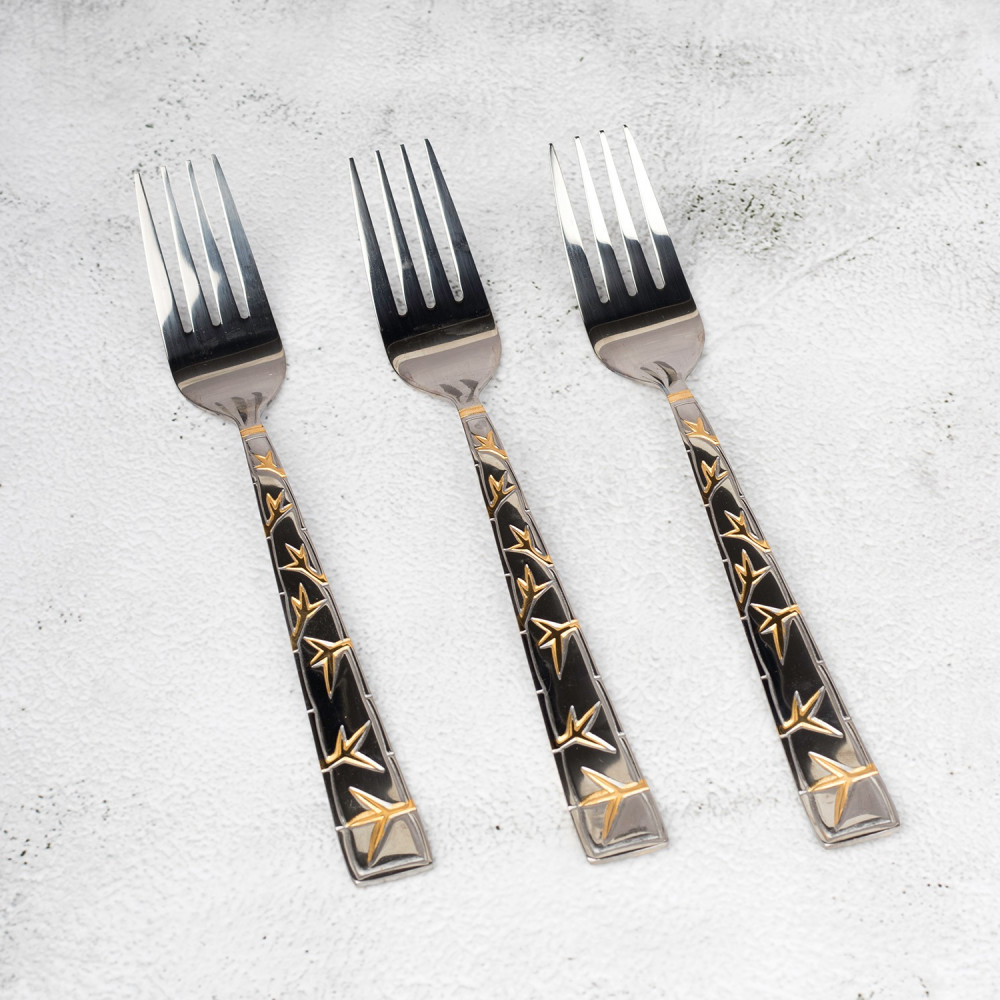 طقم شوكة أكل ستار ستيل ذهبي 6 حبة