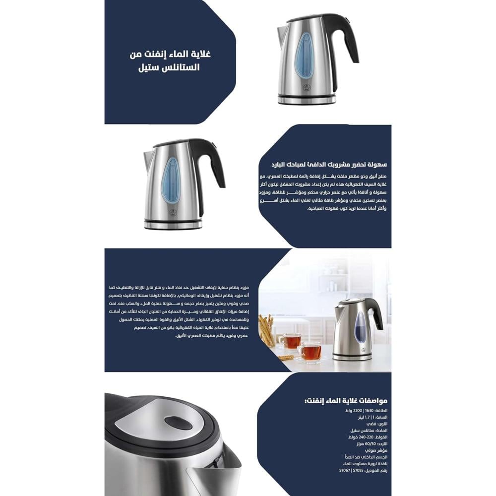 غلاية السيف ستيل كامل 1.7 لتر