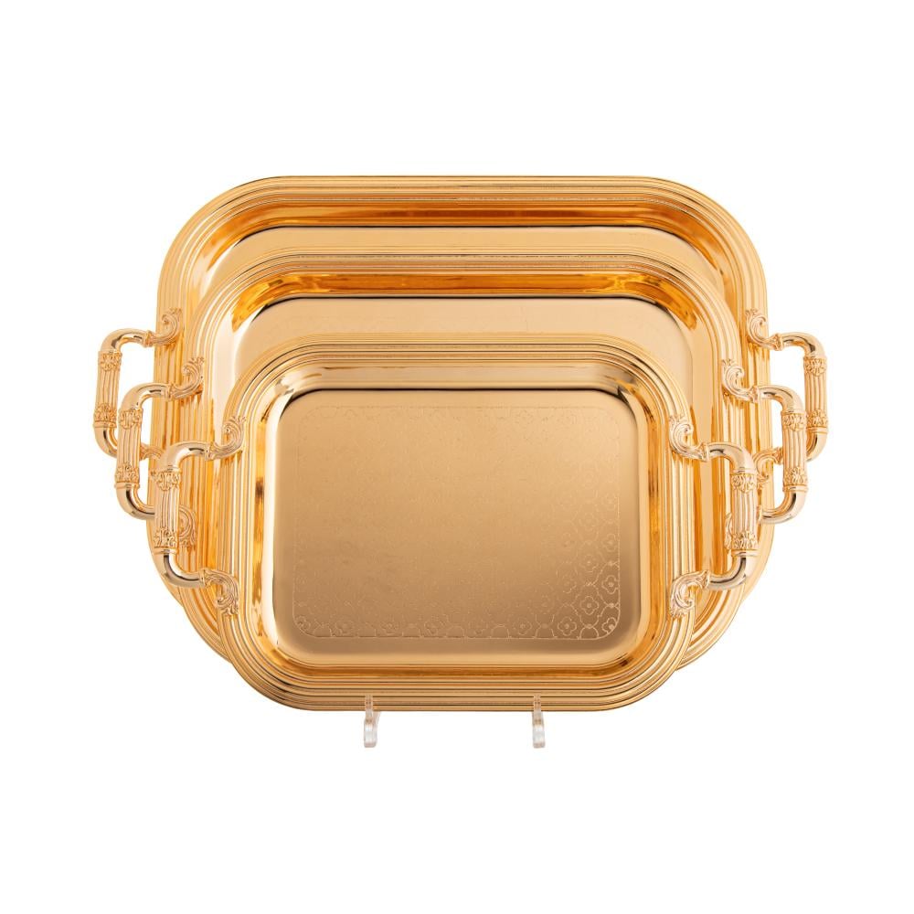 طقم صواني تقديم 3 قطع ذهبي كامل