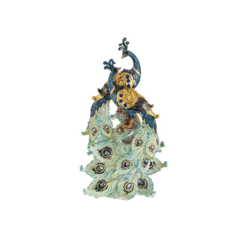 مجسم ديكور طاووس ثنائي ازرق 29.5 سم