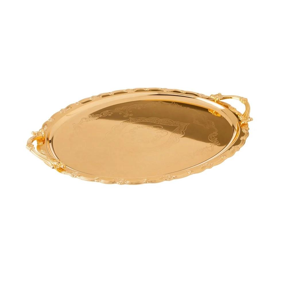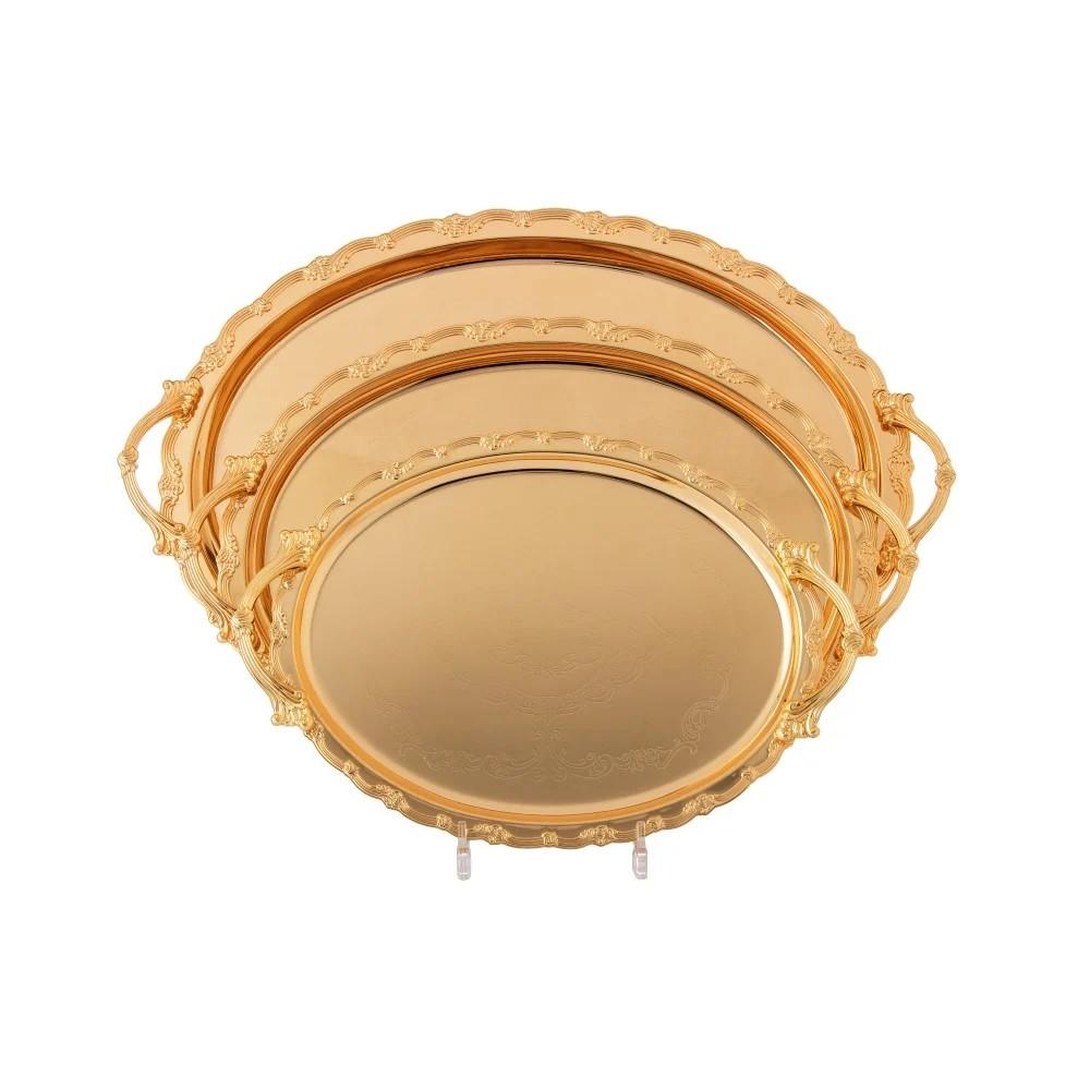 طقم صواني بيضاوي ستيل ذهبي 3 قطع