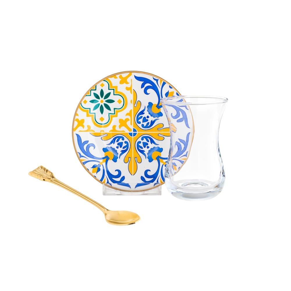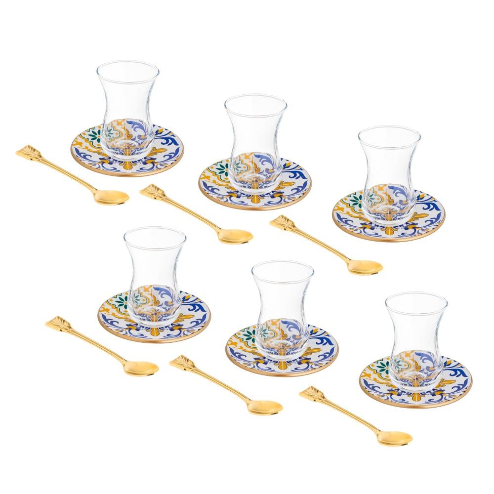 طقم شاي زجاج تركي 18 قطعة بألوان عصرية