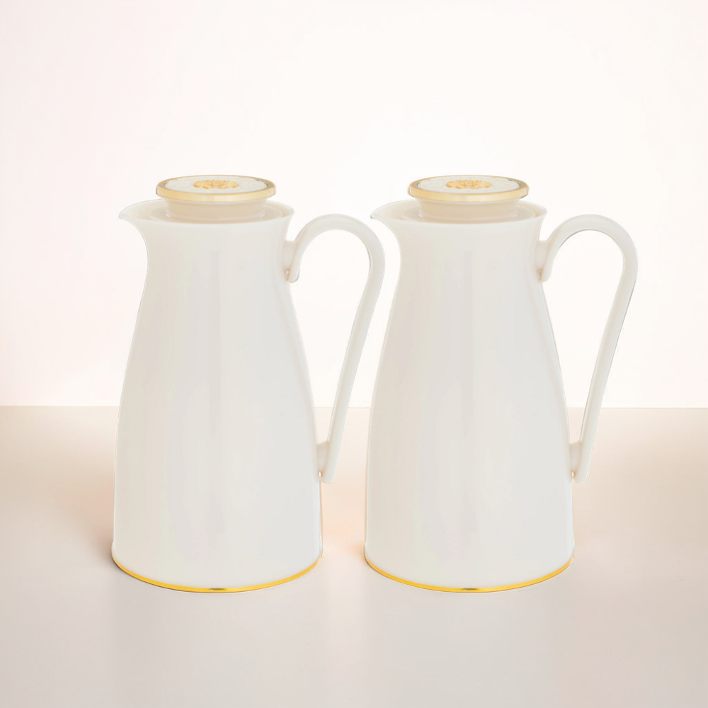 طقم ترمس ألاسكا قطعتين لون أبيض لؤلؤي مع ذهبي