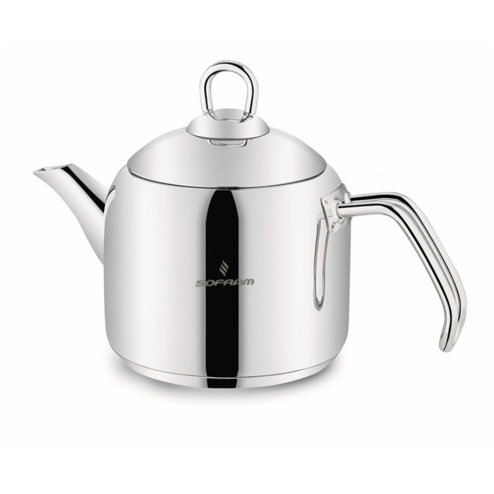 براد شاي ماركة سوفرام التركية مصنوع من الستانليس الستيل المقاوم للصدأ 18/10 بتصميم انيق