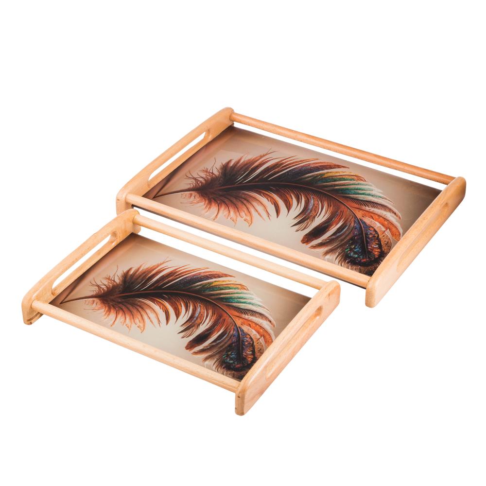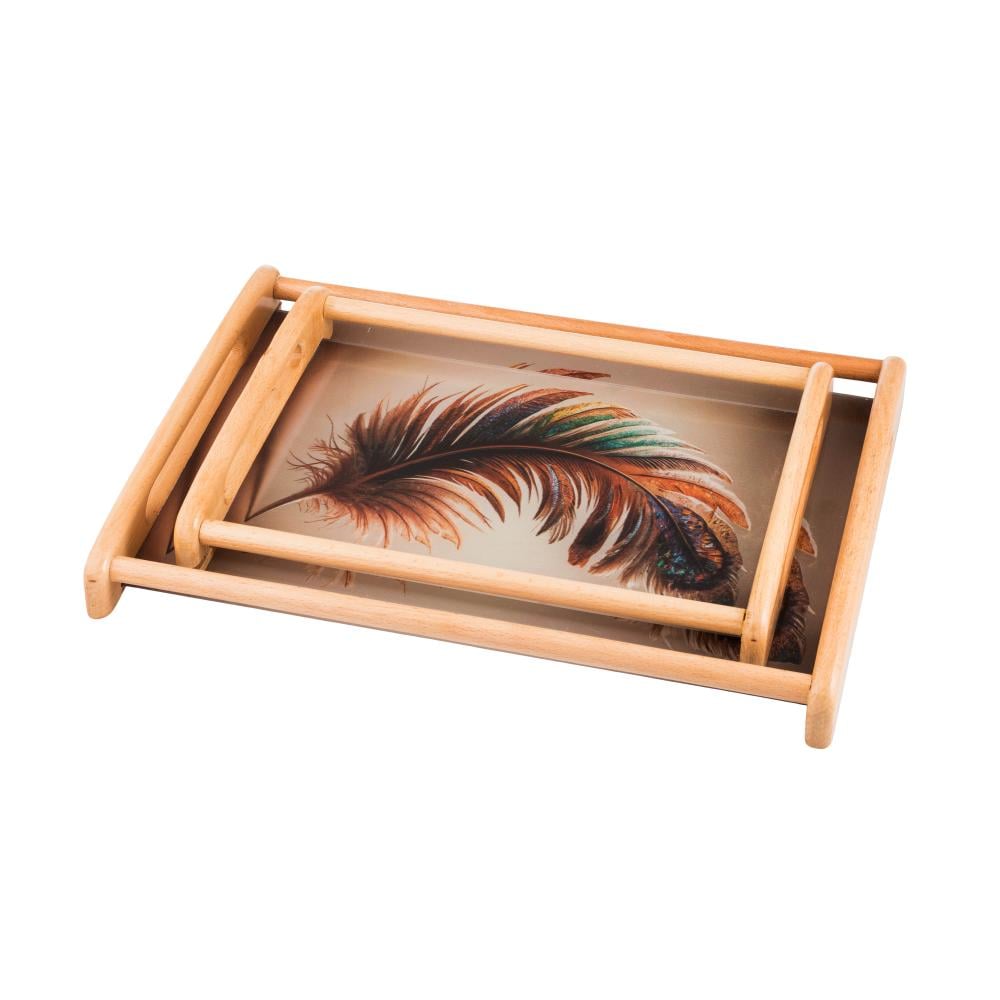 طقم صواني خشب 2 قطعة ارضية زجاج موديرن ملون