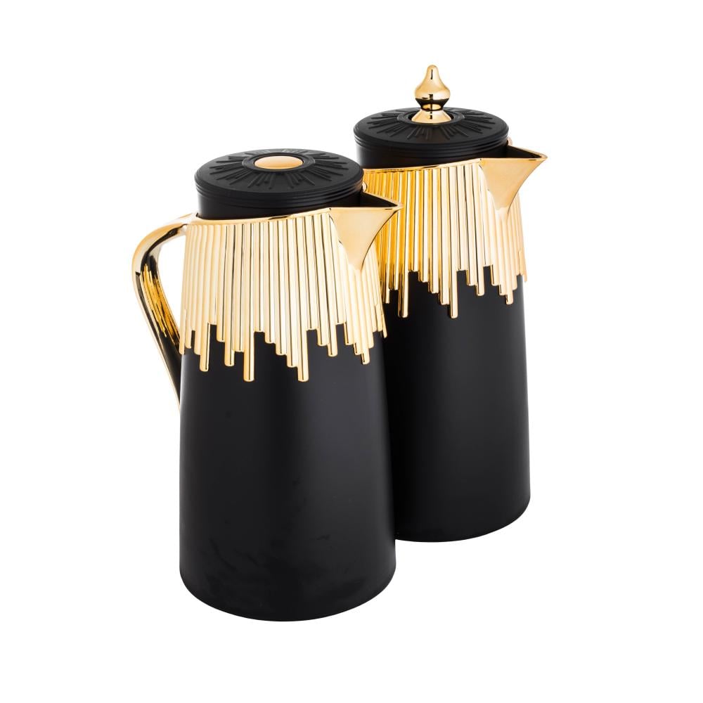 طقم ترامس شاي وقهوة قطعتين أسود ذهبي