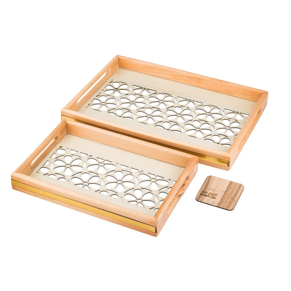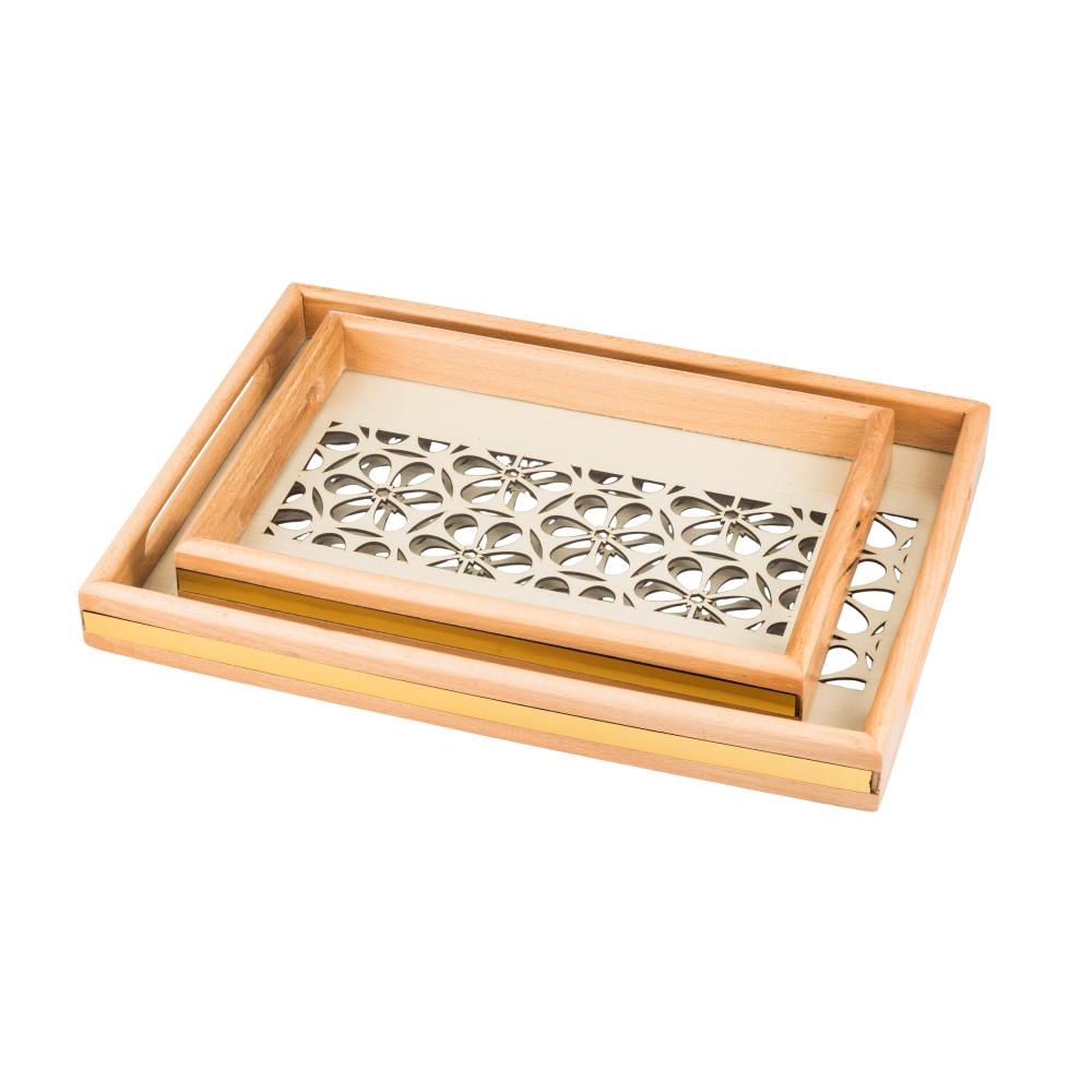 طقم صواني خشب 2 قطعة ارضية زجاج موديرن ملون
