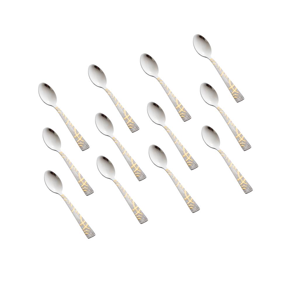 طقم ملاعق حلا ستيل مع ذهبي 12 قطعة