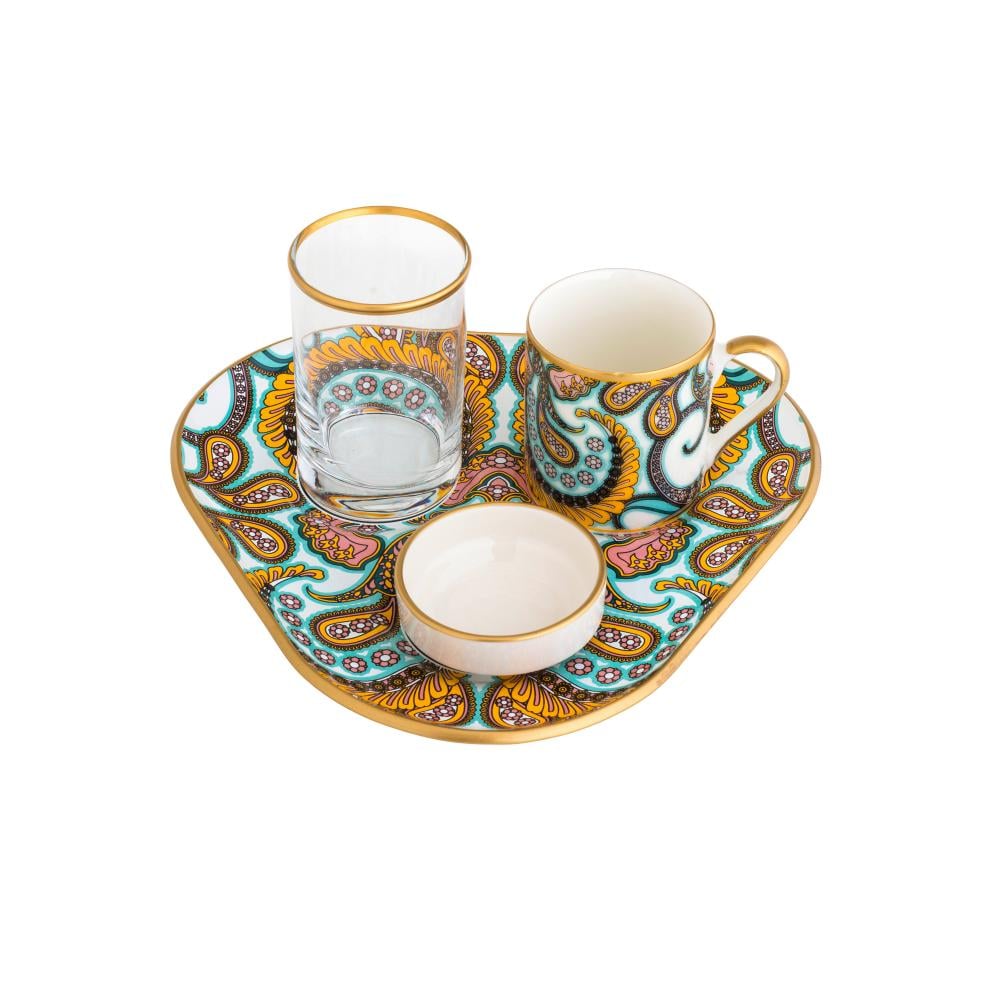 استمتعي بفن تقديم القهوة التركية باسلوب الأناقة الحديثة مقدمًا تجربة فاخرة في كل فنجان والمزين بأنماط معقدة ومصنوع بدقة تعكس كل قطعة جوهر الضيافة العربية