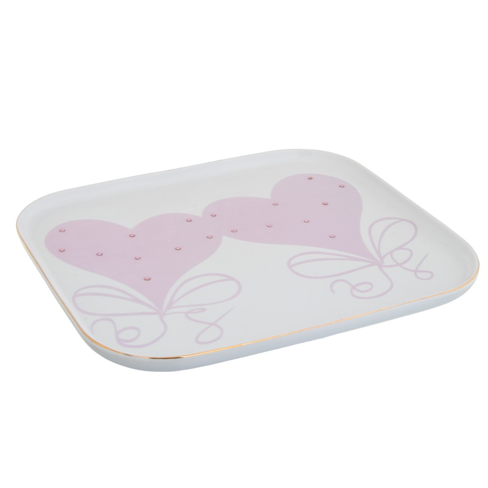 صحن تقديم مصنوع من البورسلين مع فصوص من الكريستال