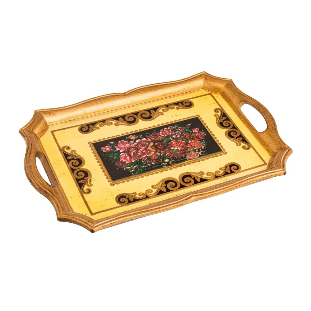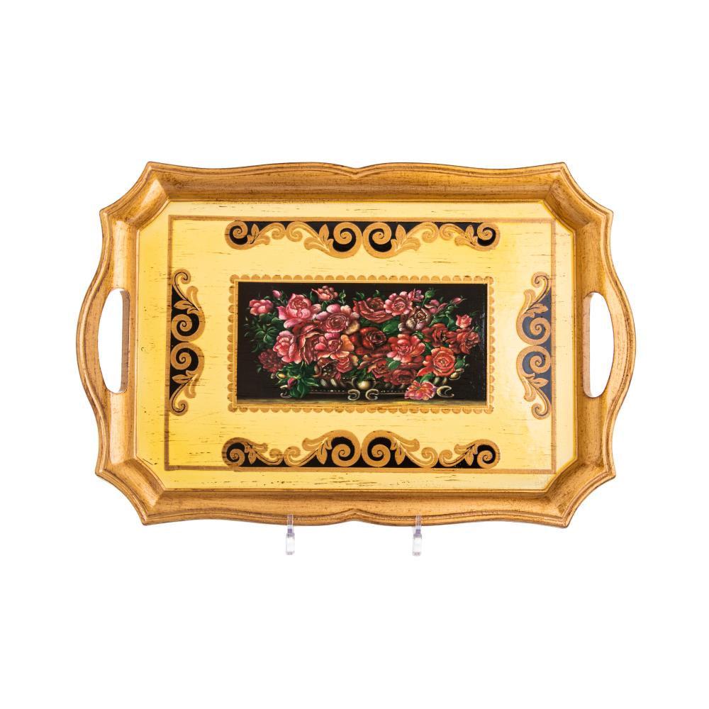 صينية تقديم مستطيلة مصنوعة من الخشب الفاخر و تتميز بالزخرفة الانيقة تعطي لمسة جمالية وكلاسيكية في التقديم والضيافة