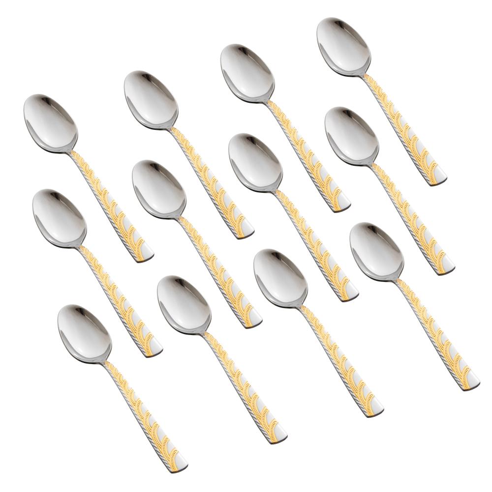 طقم ملاعق أكل ستيل مع ذهبي 12 قطعة
