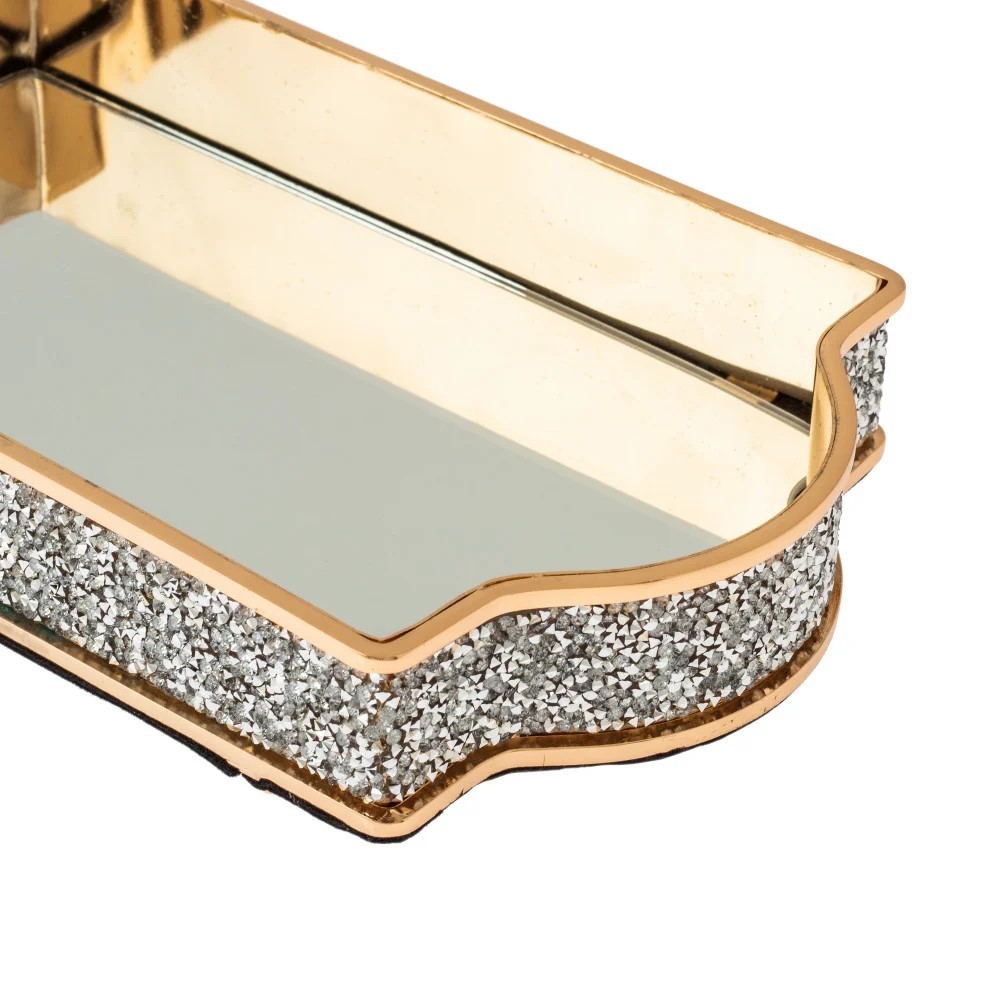 صينية تقديم مصنوعة من المعدن المطلي باللون الذهبي الفاخر مع المراية في الوسط
