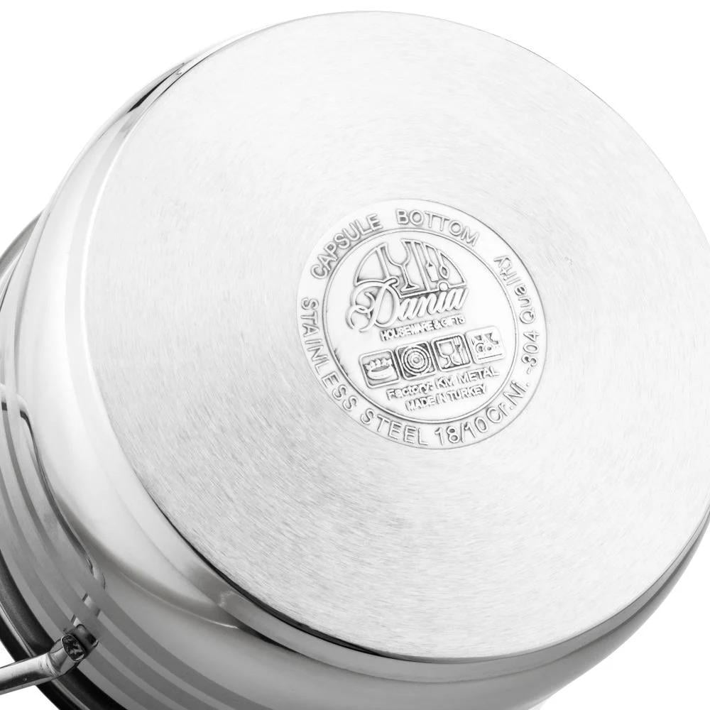 ارتقِ بمطبخك إلى مستوى جديد من الأناقة والكفاءة مع هذا الطقم التركي الفاخر المصنوع من ستانلس ستيل 18/10 عالي الجودة المقاوم للصدأ. تصميمه اللامع يعكس الفخامة، ومتانته تضمن لك سنوات من الاستخدام الموثوق.