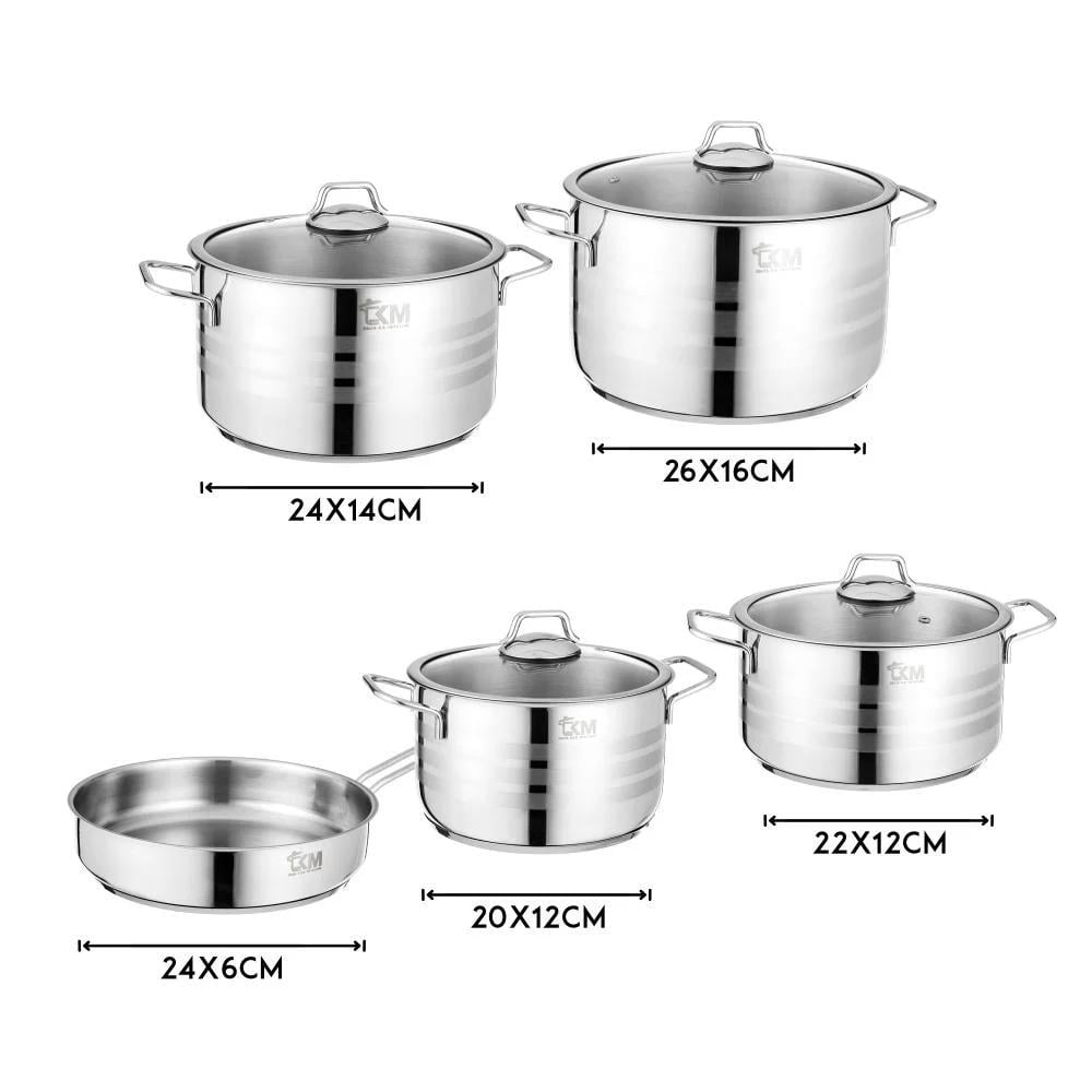 طقم قدور ستيل تركي فاخر 18/10 غطاء زجاج 9 قطع