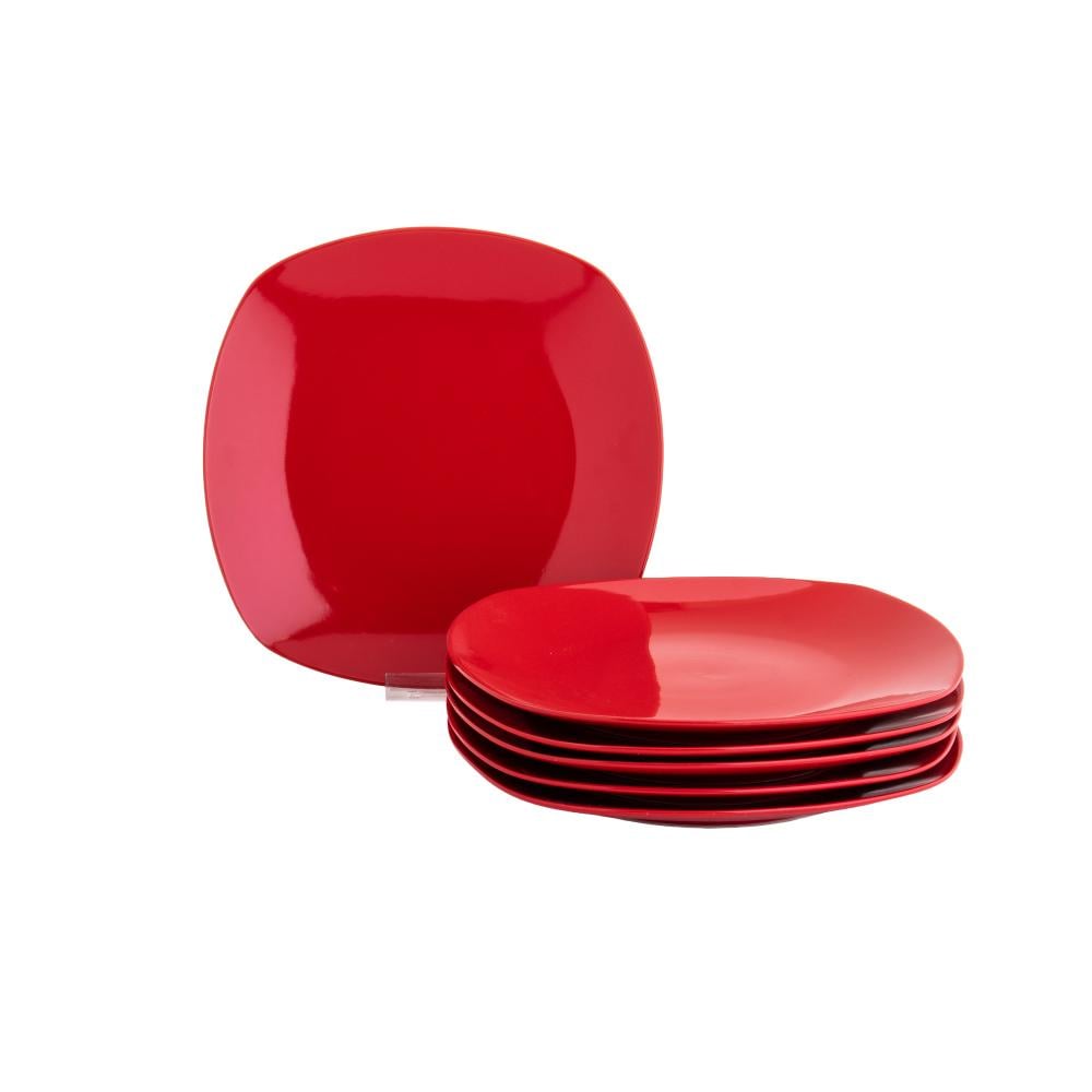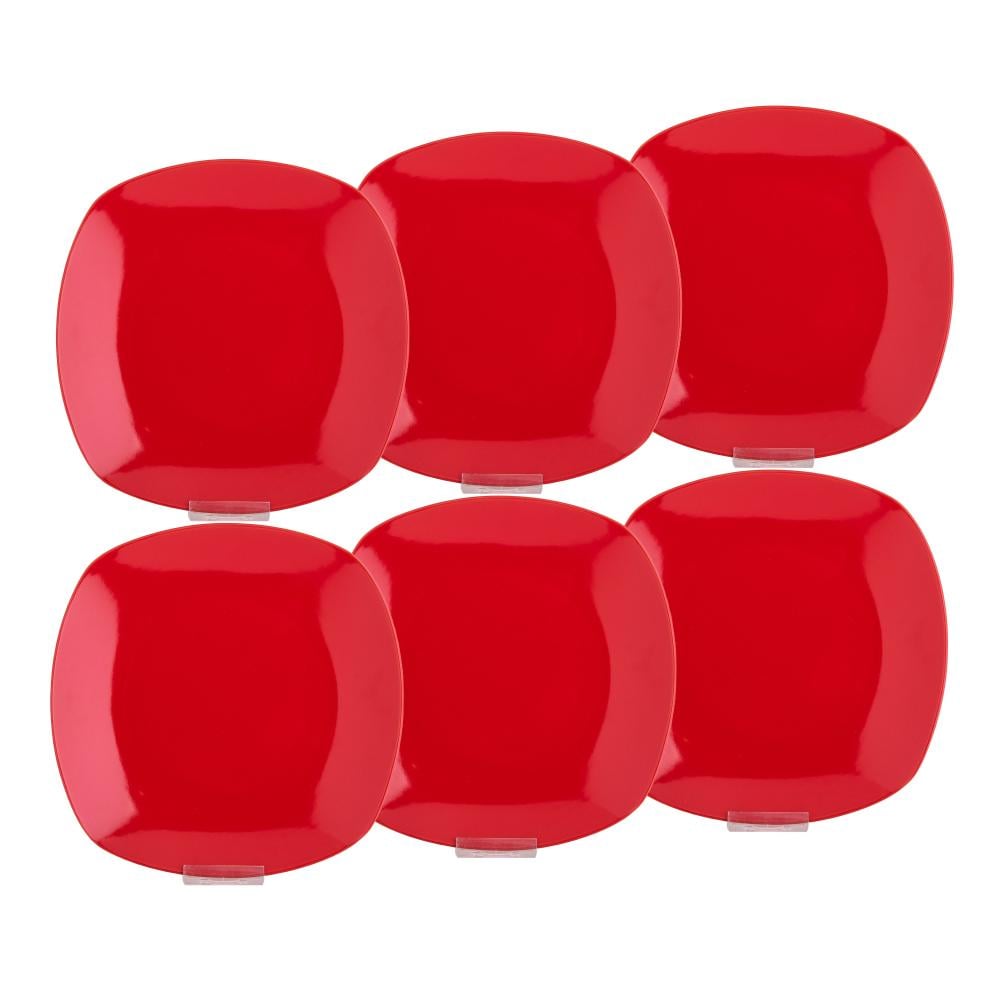 طقم صحون أكل 6 قطع لون أحمر